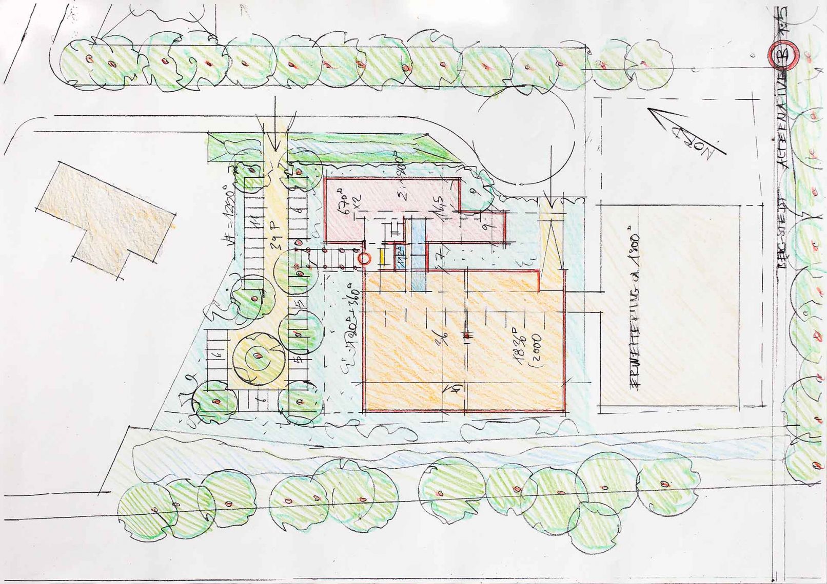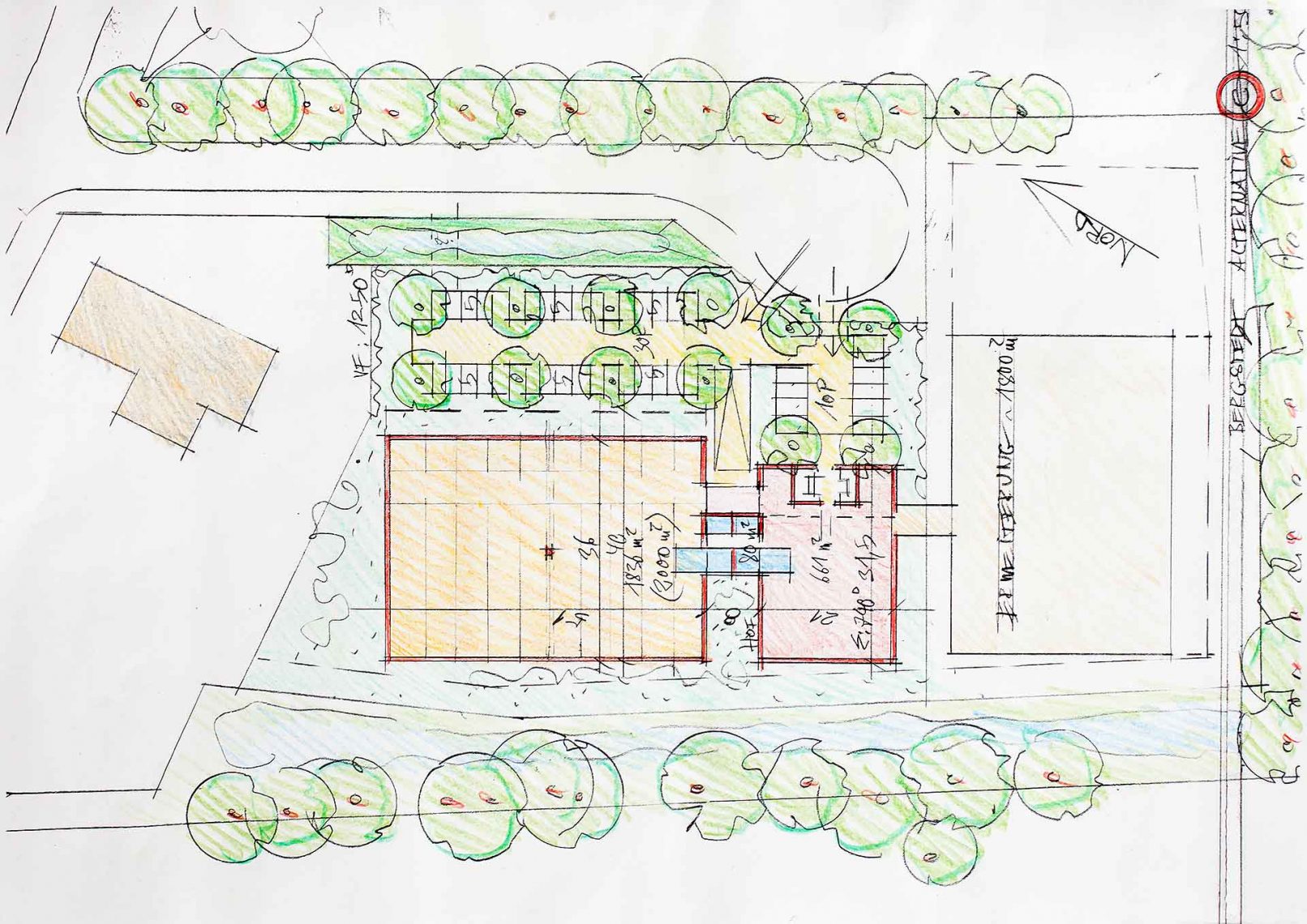 Bebauungsstudie für eine Gewerbeanlage, Volumen 3500 m² BGF – Hamburg-Bergstedt